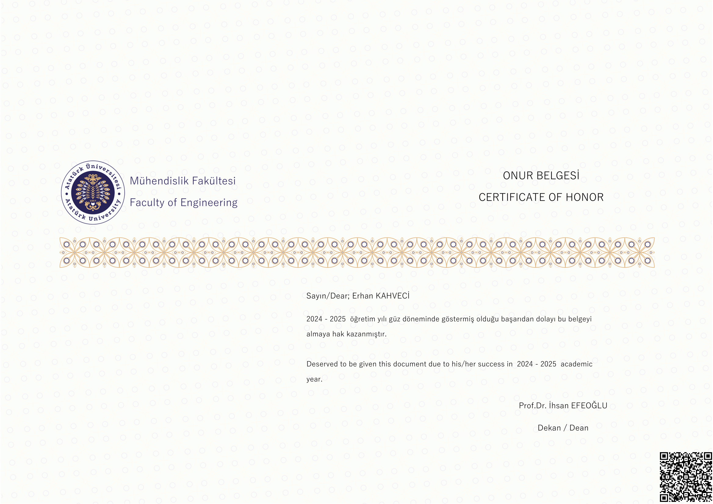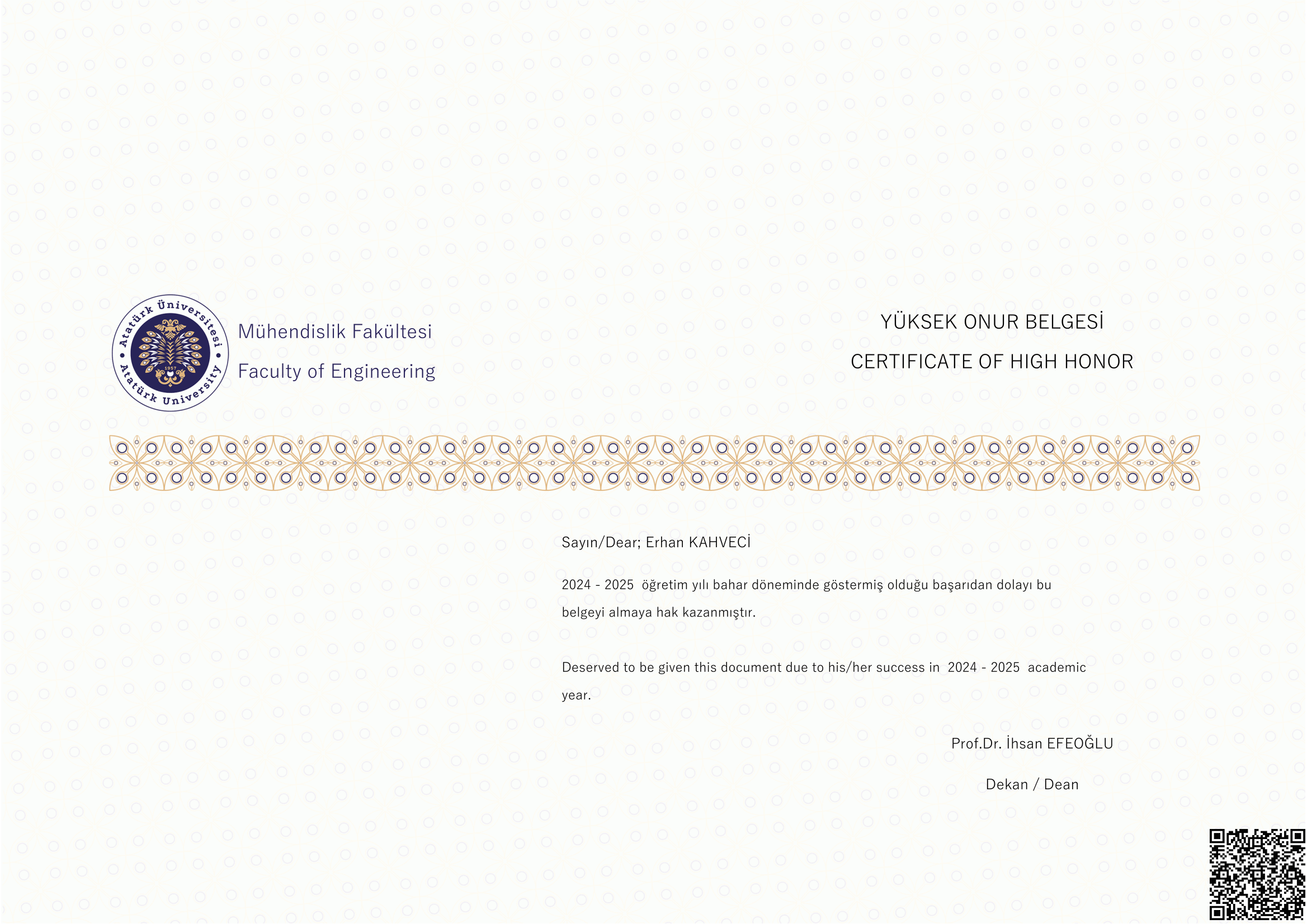 Merhaba, ben Erhan Kahveci, Atatürk Üniversitesi Bilgisayar Mühendisliği 4. sınıf öğrencisiyim. Eğitimim boyunca programlama dilleri (C++, Python, MATLAB, Java), veri tabanı yönetimi (SQL, SQLite), web ve mobil uygulama geliştirme (ASP.NET, Flutter) ile kullanıcı arayüzü tasarımı (Figma) konularında deneyim kazandım. Ayrıca GNU/Linux işletim sistemleri, komut satırı betik yazımı ve paralel programlama alanlarında da derinlemesine bilgi sahibiyim. Deneyap Türkiye'de mentörlük yaparak liderlik ve takım çalışması becerilerimi geliştirdim. TEKNOFEST gibi önemli etkinliklerde takım kaptanlığı ve proje yönetimi tecrübeleri edindim. Ayrıca Tivibu'da yazılım test stajyeri olarak çalışma fırsatı buldum. Teknoloji alanında yenilikçi çözümler üretmek ve kendimi sürekli geliştirmek hedefiyle kariyerime yön veriyorum.